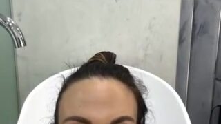 ReyQuins takes a bath with her white shirt, soon the shirt becomes completely transparent, it’s hot, we see her big tits through it! But she’s nice, she spreads the sides to let us admire her voluptuous chest, how beautiful they are, full and round, with big hard nipples! I love wet clothes shows!